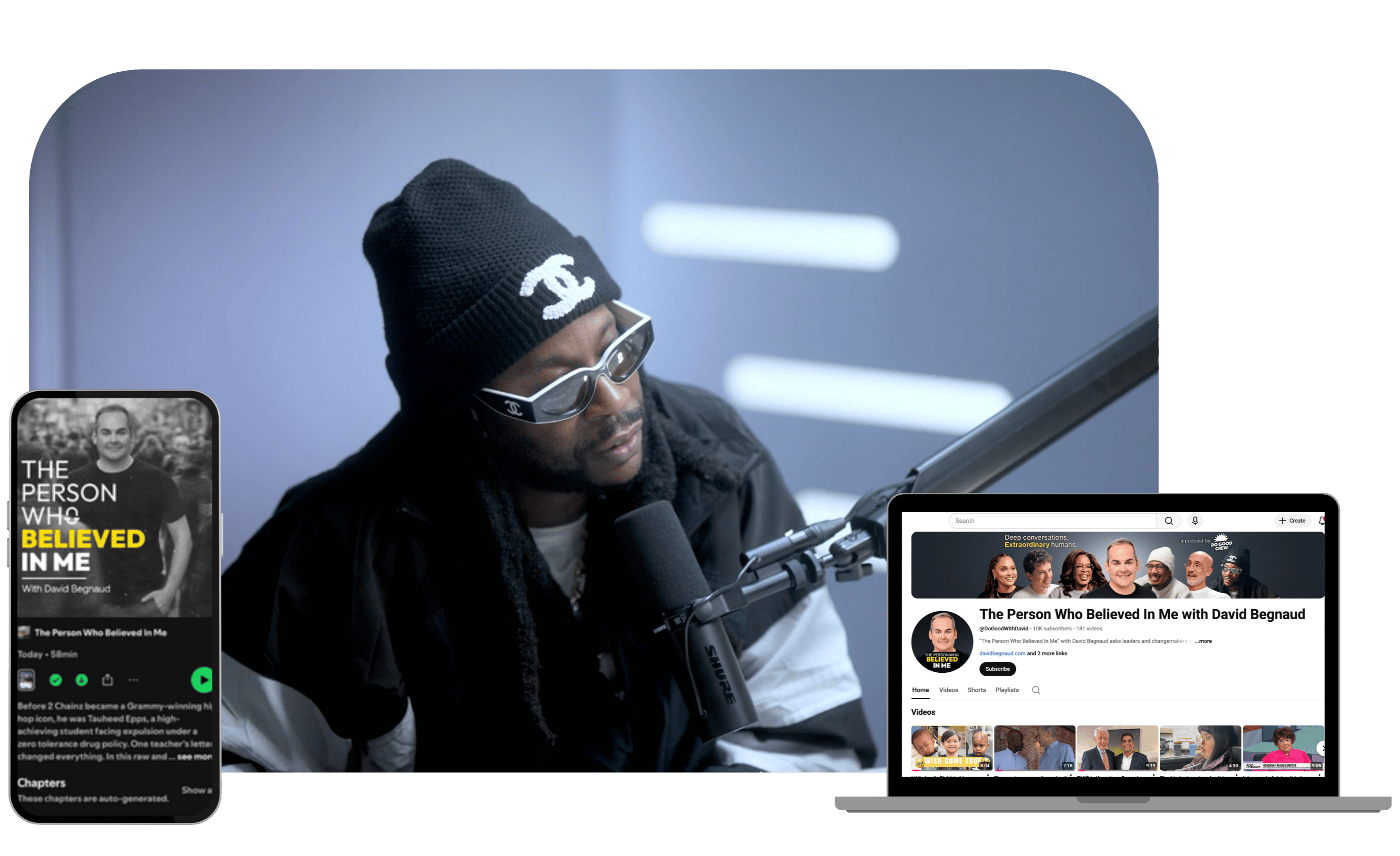 My second guest on The Person Who Believed In Me is hit rapper and songwriter 2 Chainz. Growing up in the tough streets of College Park, Georgia, Tauheed “2 Chainz” Epps was starting to fall into a life of crime… until a teacher named Ms. Love set him on a different path to pursue his creativity. Some highlights include: